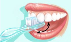et un mouvement réalisé en allant de la gencive vers la dent.