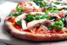 tomate, fromage, jambon*, chorizo, mozzarella, tomates fraîches, oeuf.
